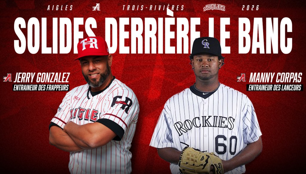 Les Aigles de Trois-Rivières annoncent aujourd’hui deux mouvements importants au sein de leur personnel d’entraîneurs en vue de la saison 2026. L’organisation confirme l’embauche de Manny Corpas comme entraîneur des lanceurs, tout en annonçant le retour de Jerry Gonzalez à titre d’entraîneur des frappeurs.