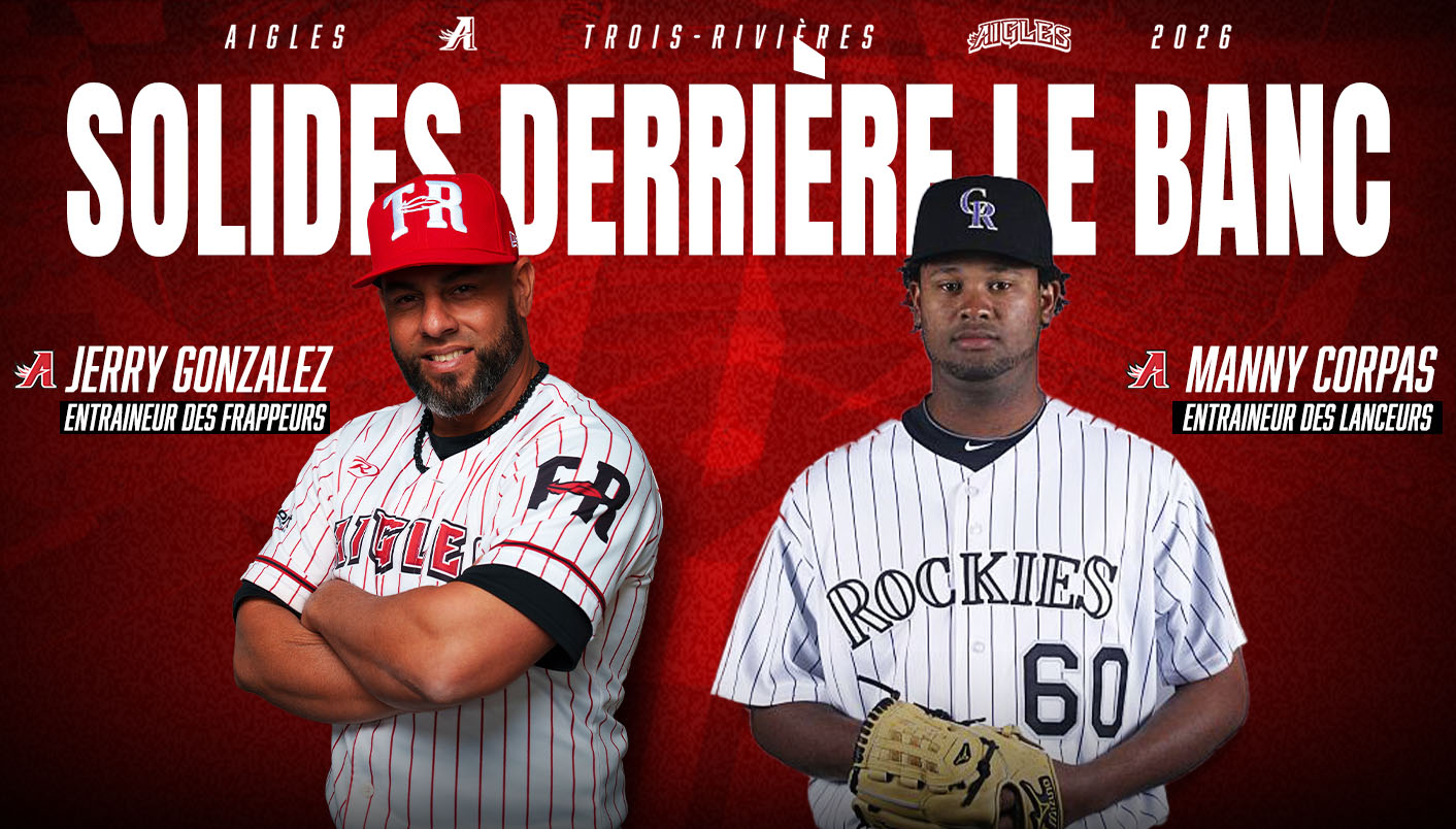 - Les Aigles annoncent l’arrivée de Manny Corpas comme entraîneur des lanceurs et le retour de Jerry Gonzalez à titre d’entraîneur des frappeurs